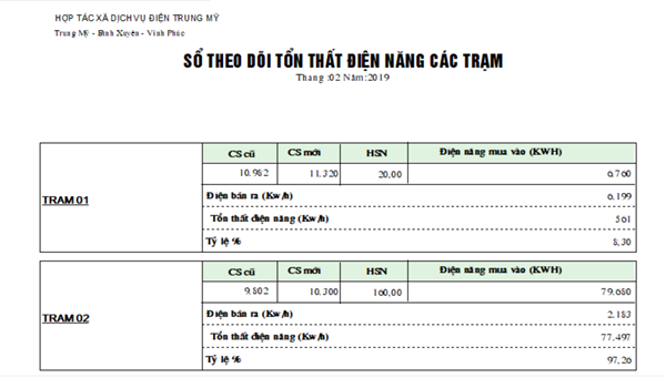 Lên báo cáo hao hụt chi tiết tới từng trạm biến áp