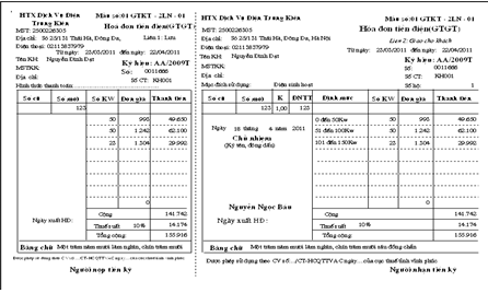 In hoá đơn GTGT theo mẫu quy định chuẩn các mức điện chi tiết cho khách hàng (Công ty chúng tôi có thể chỉnh sửa mẫu in cho phù hợp vỡi phôi in của quý khách)