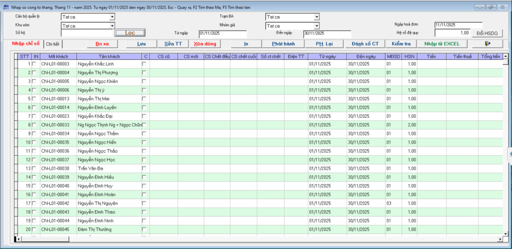 Danh mục khách hàng công tơ điện